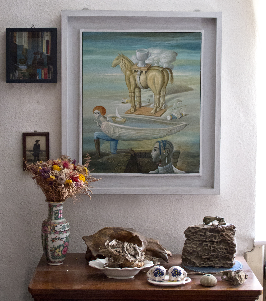 | Das ehemalige, protestantische Pfarrhaus wurde 1785/86 nach Plänen von J. G. Sommer an Stelle des reformierten Pfarrhauses erbaut. | ![]() Hellmut Culmann, der Vater von Otfried H. Culmann, lebte hier von 1932 bis 1949 als Pfarrer der Gemeinde Billigheim-Mühlhofen. | ![]() Otfried H. Culmann und seine Frau Gabriele erwarben das Haus 1978 und machten es zum Zentrum seiner Phantastischen Kunst. | ![]() ![]() ![]() |