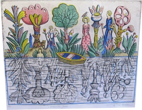 "Botanischer Garten" - 1998 Radierung handkoloriert