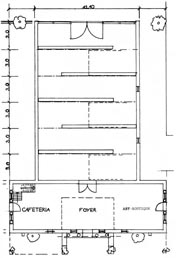Der Grundriß des Gebäudes ist eine T-Form, an die sich das Nymphaeum in C-Form anschließt.